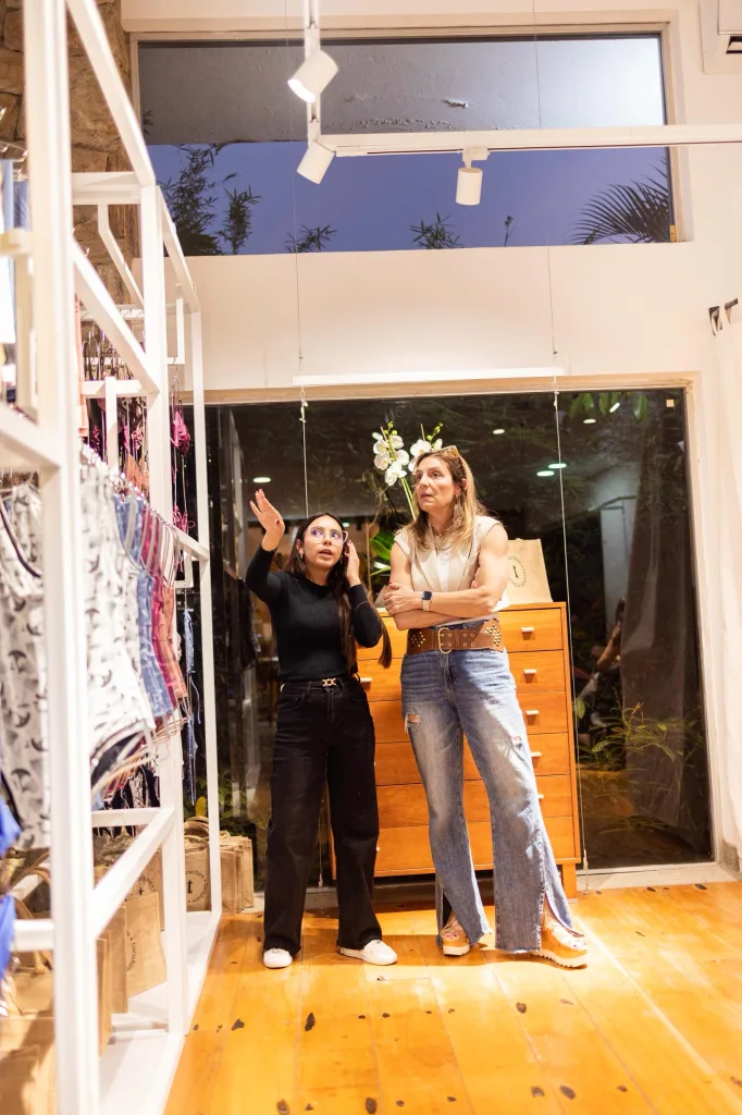 Aquí, cada visita es personal, pausada y sensorial. Las piezas se exhiben como objetos de estudio, los clientes reciben sus compras en sobres y bolsitas de yute, y la conversación sobre diseño, color y confección ocurre sin prisa, tal como sucede en los ateliers de moda.